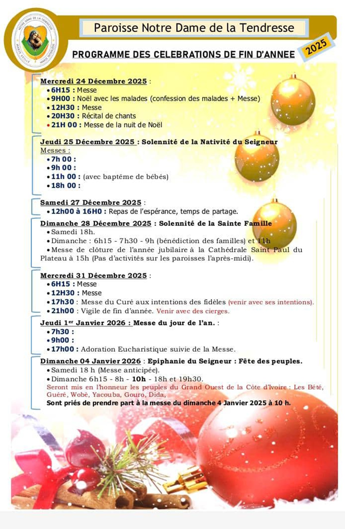 Programme des fêtes de fin d'année à NDT